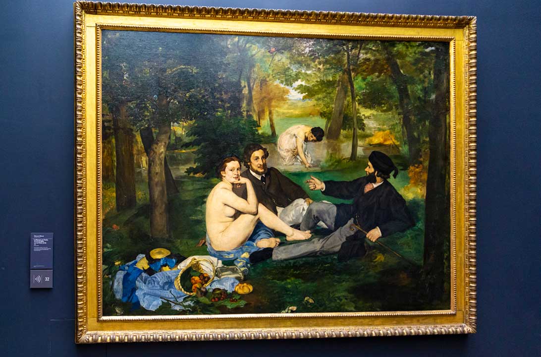 • Quadro O Almoço Sobre a Relva, de Edouard Manet (salas 29-37): exemplar do impressionismo, essa tela de 1862 retrata uma mulher nua sentada na grama junto a dois homens completamente vestidos