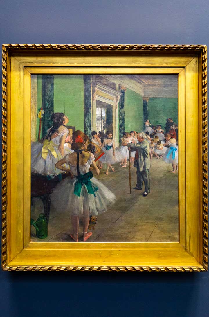 • Quadro A Aula de Dança, de Edgar Degas (salas 29-37): exemplar do impressionismo, essa tela de 1874 retrata alunas de balé ao fim de uma aula do mestre Jules Perrot, amigo do pintor