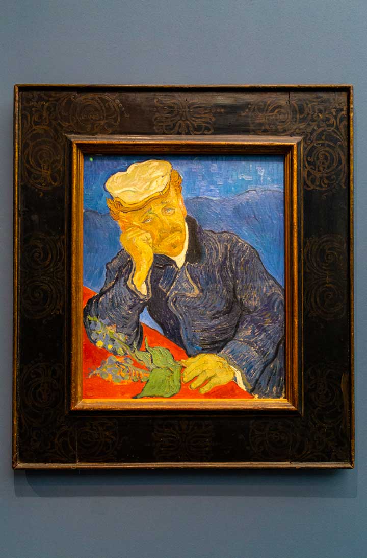• Quadro Retrato de Dr. Gachet, de Vincent van Gogh (salas 43-45): exemplar do pós-impressionismo, essa tela de 1890 retrata o médico Paul Gachet sentado à mesa, com a cabeça apoiada no braço