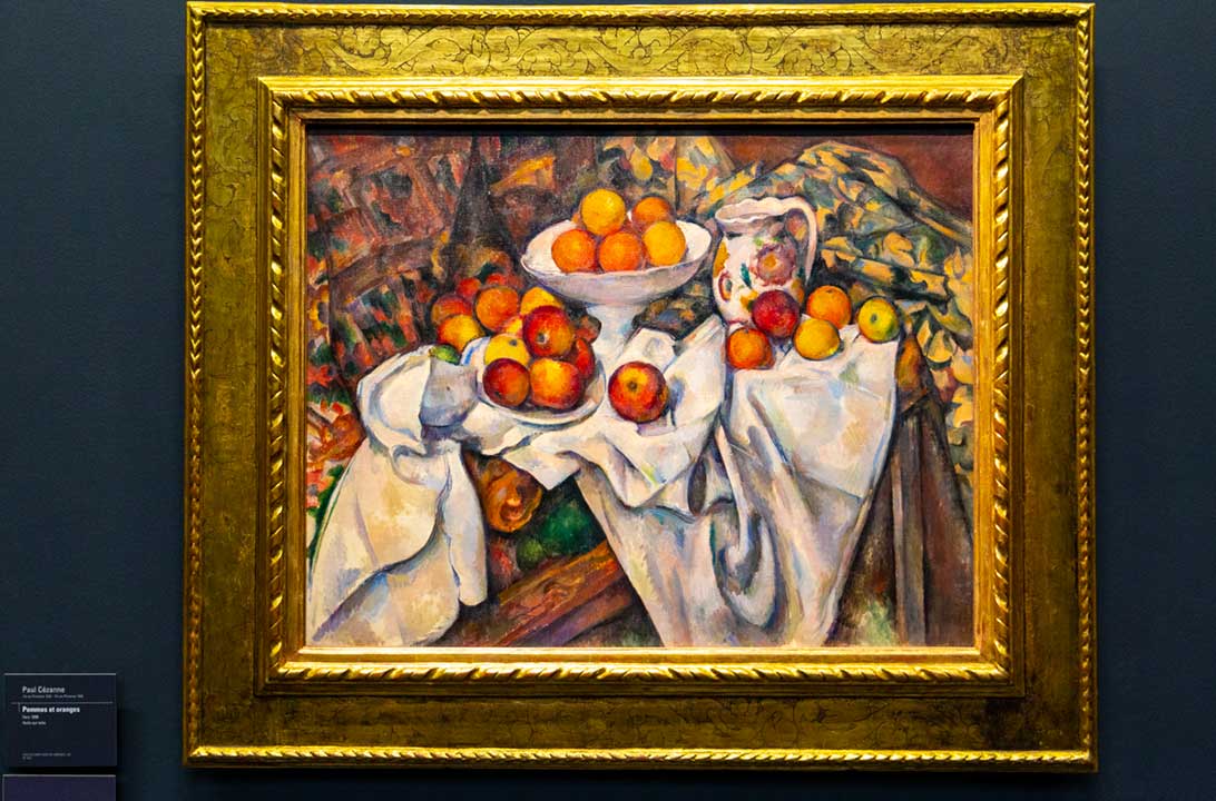 • Quadro Natureza-morta com Maçãs e Laranjas, de Paul Cézanne (salas 29-37): exemplar do pós-impressionismo, essa tela de 1899 retrata as frutas e um jarro sobre uma toalha que ganham dimensões e perspectivas distorcidas