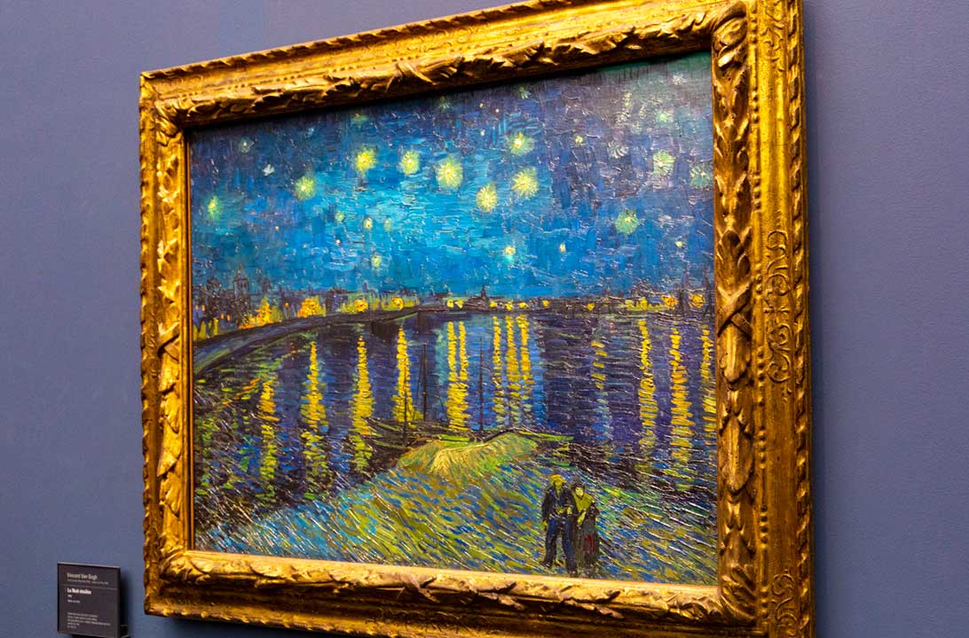 • Quadro Noite Estrelada Sobre o Rio Ródano, de Vincent van Gogh (salas 43-45): exemplar do pós-impressionismo, essa tela de 1888 retrata a paisagem vista à noite à beira do Rio Ródano, no sul da França