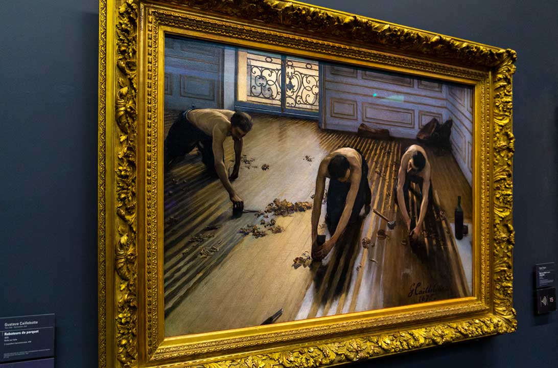 • Quadro Os Raspadores de Assoalho, de Gustave Caillebotte (salas 29-37): exemplar do impressionismo, essa tela de 1894 retrata três trabalhadores sem camisa raspando o assoalho de um apartamento em Paris