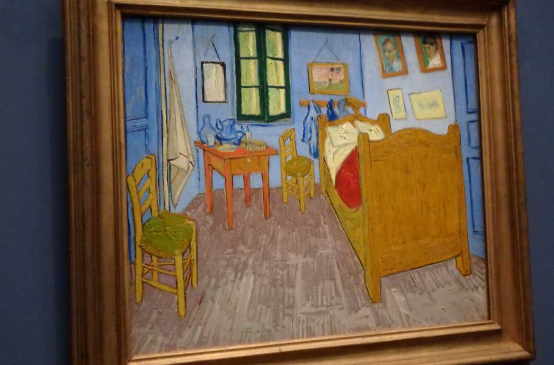 • Quadro O Quarto de Van Gogh em Arles, de Vincent van Gogh (salas 43-45): exemplar do pós-impressionismo, essa tela de 1889 retrata o quarto que o pintor alugou numa pensão na cidade de Arles